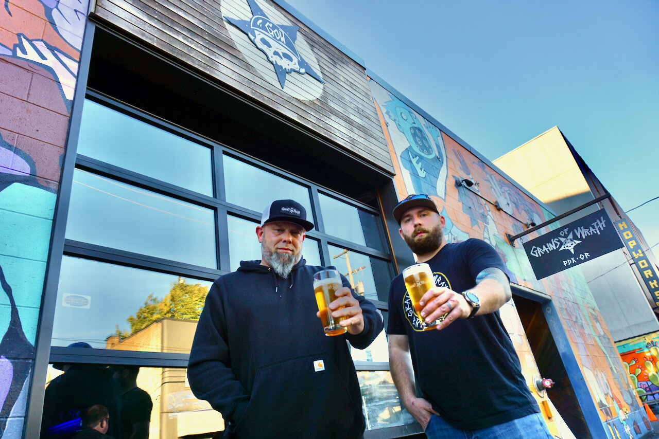 Grains of Wrath owners Mike Hunsaker and Brendan Greenen outside their new Portland location