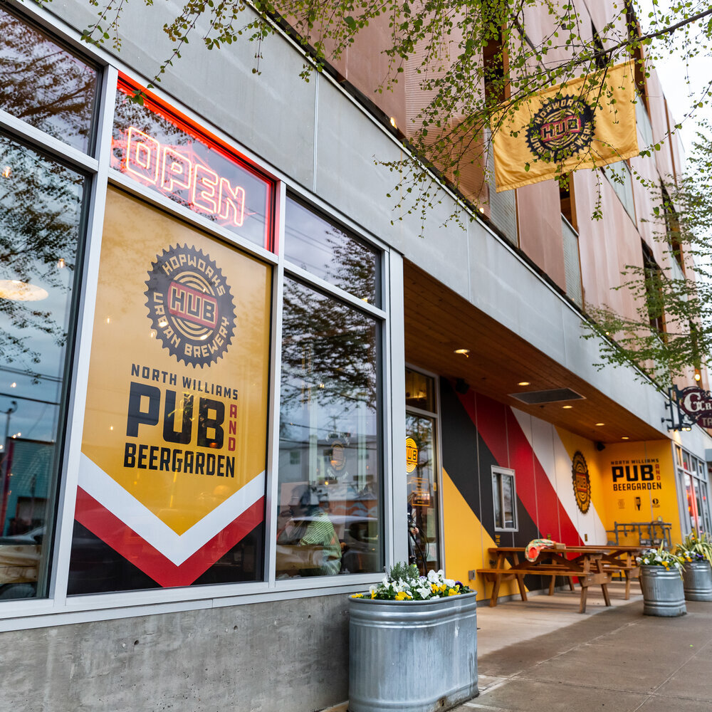 Hopworks Urban Brewery North Williams Pub (formerly known as the Bike Bar) has permanently closed and is now available for lease as a turnkey taproom/restaurant. Bike Bar was Hopworks second location, opened in 2011. Rebranded as the North Williams Pub & Beer Garden in 2019, the satellite HUB location closed on March 19th due to the pandemic, but had partially reopened for food and beer to-go and pop-up service.