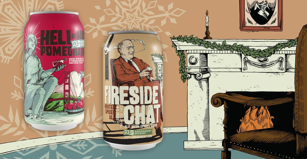 Christmas comes a little early every year with the much-anticipated November 2020 release of Fireside Chat. A flagship beer recipe of 21st Amendment's San Francisco brewpub that's evolved into an annual limited-edition winter warmer favorite, Fireside Chat is the perfect sipper at the Thanksgiving dinner table or while nestled up fireside with loved ones. Lush and flavorful cocoa nibs from TCHO Chocolate (San Francisco, Calif.) add a deep layer of texture to the beautiful malt character of eight different malts. The English-style strong ale is well-balanced by Shaun O'Sullivan's (Co-Founder and Brewmaster, 21st Amendment Brewery) selection of spices. It's no wonder Fireside Chat took home a Silver Medal from Great American Beer Festival, and Men's Health magazine ranks it #1 of the "10 Best Christmas Beers 2020" (LINK).