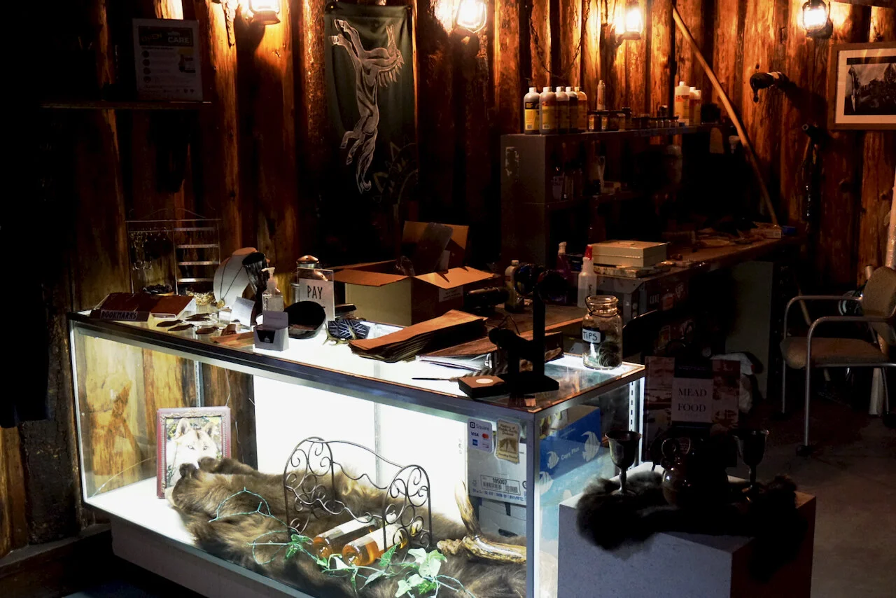 The leatherworking and small scale craftmanship of local artisans and LARPers will be a major part of Wyrd’s retail component taking up the south corner of their basement pub. From a consignment area that wouldn’t be out of place in Hyrule, Wyrd crafts their own novelty gear and features everything from local honey, to pagan earrings and drinking horns. The pub space is also decorated with display only items that are both made in-house and collectible armor that could be made from mithril and swords like something the Kingslayer would be swinging. The leatherworking and consignment based side of the operation will be open in the days from noon to 8pm Tuesday-Saturday before the mead hall opens at Friday-Sunday from 5-10pm.