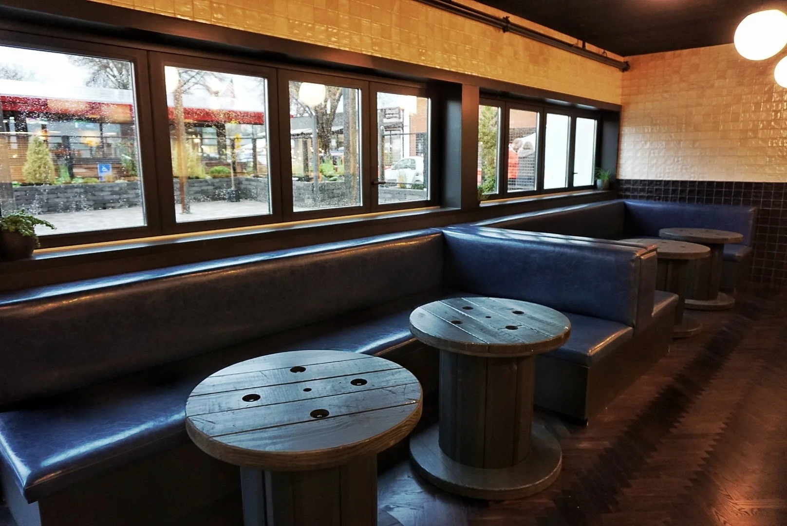 LL Beaverton is a 5,614 sq. ft. historic building erected in 1935, technically three floors including a basement prep kitchen and walk in cooler, and a small attic level mezzanine that looks down upon the 18’ ft high ceilinged pub and will function as a separate cocktail bar when the space is finished this coming January. The interior has a slightly smaller bar, but more private seating options and a separate section to relax in partitioned and quieter dining/drinking areas via an adjacent hall running alongside the main bar and the entire indoors can accommodate 150 seated.
