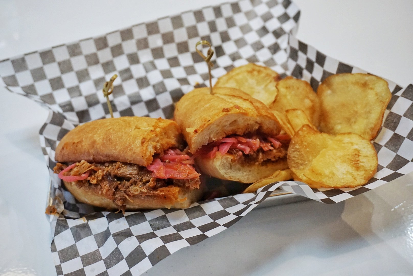 Guests order from the Moon Room food truck and receive a buzzer to let them know when their order is up. The menu is completely different than the one at Ecliptic’s mothership and limited to a tasty set of sandwiches, soups and salads that they plan to rotate every 6 weeks to match the season. The opening menu features a spicy Fried Chicken Sandwich with housemade pickled and grilled toppings, a Turkey Sandwich with mama lil’s, a Pulled Pork Sandwich with pickled slaw and a spicy BBQ sauce, and a Grilled Cheese Sandwich with sharp white cheddar, tomato and a parmesan crust. There are options to switch out the meat proteins with fried maitake mushroom or tofu and soy curls.
