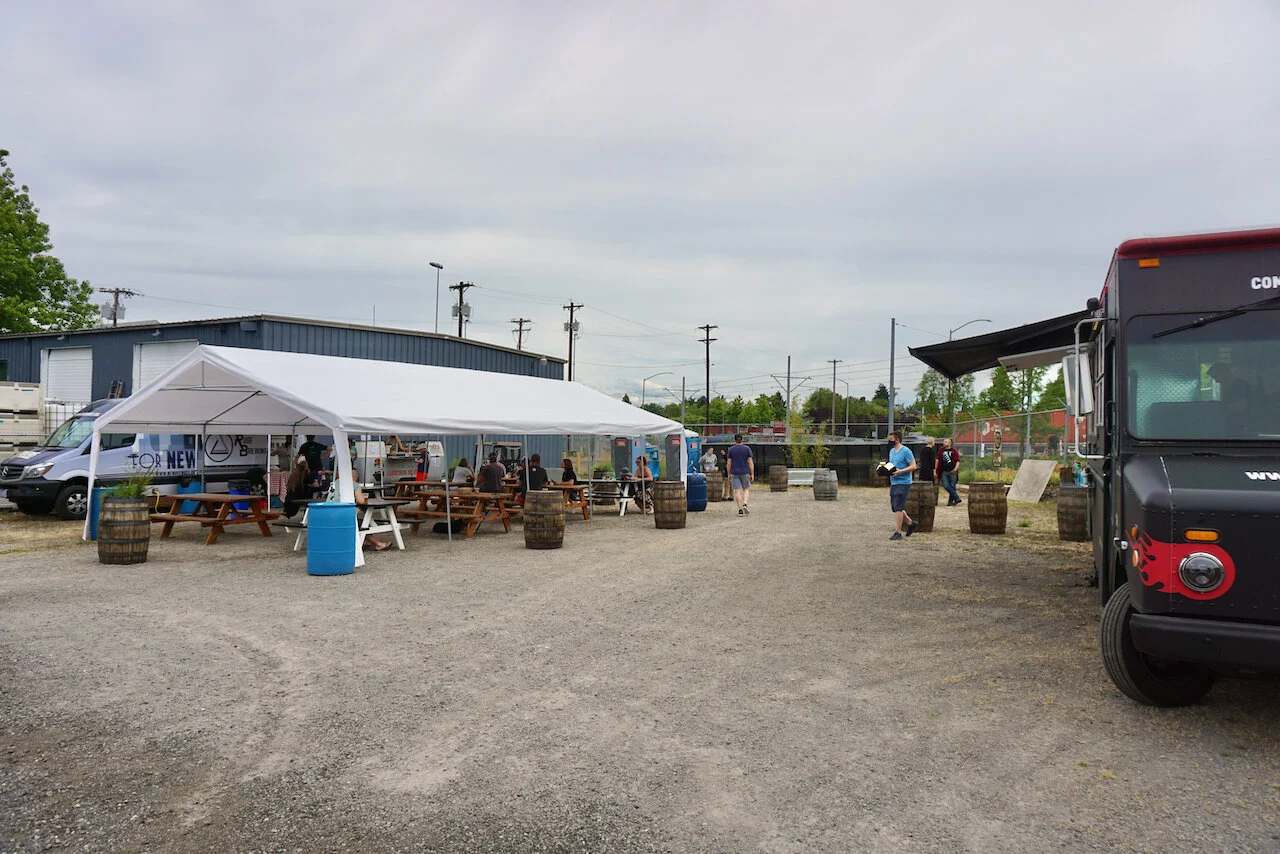 Opening weekend kicked off with Killer Burger’s food truck, and a warm but overcast day that was perfect for a soft opening as things were just beginning to get set up. The Brooklyn Garden is a gravel lot decorated with barrel planters and an awning for shade that will continue to take shape with more features over the coming weeks. 503 Distilling holds the license for the patio and is using the opportunity as a sort of outdoor pop-up taproom with both canned and draft cocktails served from their converted open top trailer van.