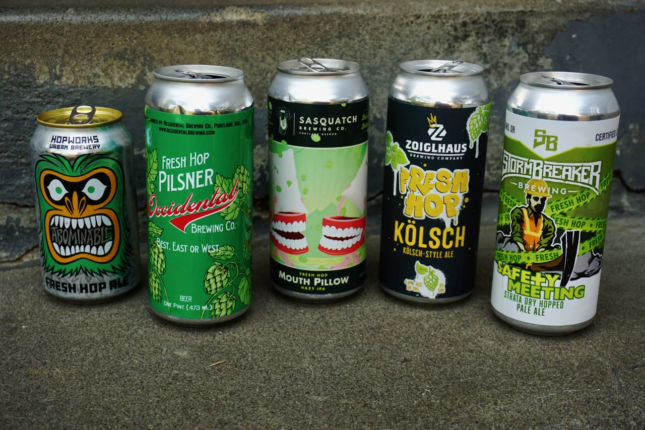 The release of Fresh Hop beers every fall is the most exciting time of the year for many of us. The rise of small batch mobile canning operations has made it much easier to find fresh hop beers if you live in the Pacific Northwest. But…with well over 100 different fresh hop beers coming from Oregon breweries alone, it's hard to know which to try, especially as these beers can come at a premium markup often costing $5-$6 per can in Oregon. Partially for fun, and partially for research, the New School is gathering a group of beer journalists together to taste through the seasons crop and share the best. For this entry we tasted through 15 different beers, and found that personal preference on what you look for, and expect from a fresh hop beer can vary wildly.