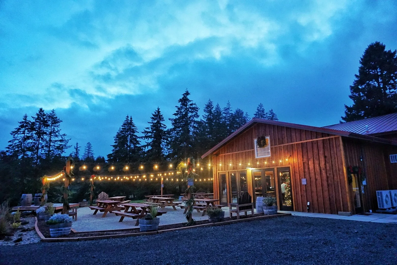 the view from Alesong Brewing & Blending’s countryside taproom patio in Eugene, OR