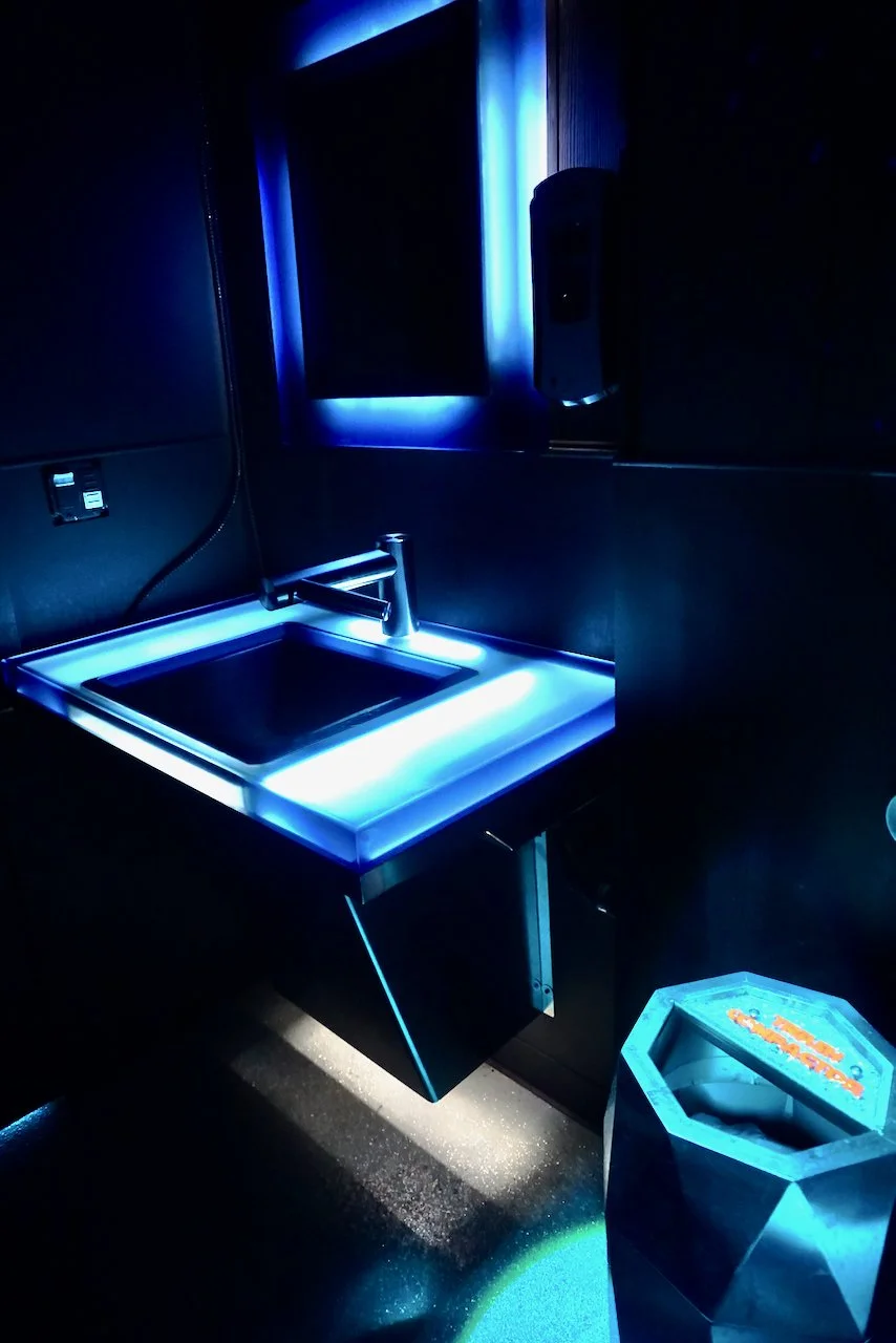“When you step inside, you’re immersed in design (physical, lighting and sound) that is unfamiliar and yet somehow eerily reminiscent of a time and place that may have only occupied your dreams,” is how Towsey-French describes it. He and Liotta collaborated with a Portland based design/build firm to conceptualize the space, which is filled with interesting choices and an amazing attention to detail in it’s creation. The primary design inspiration came from the Star Wars universe and Blade Runner, pill-shaped cutouts and jutting edges are reminiscent of the original trilogy, and the very dark interior punctuated by pink and blue neon is similar to the Vaporware culture of Ridley Scott’s 1982 film.