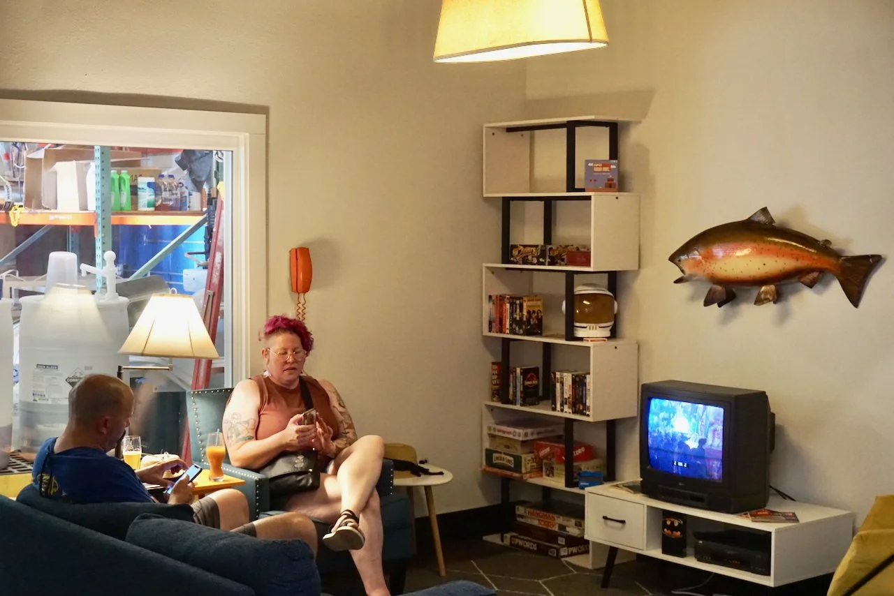 One of the central features of the Vice Beer taproom is a back alcove with sliding glass doors into the brewery production space. The open side room is nicknamed the “90’s Den” for it’s living room/basement game room theme that they have packed full of 80’s and 90’s nostalgia. There is an old boxy Zenith CRT TV that you can play Intellivision games on, or choose a VHS tape from the shelf of classics like Back to the Future, Raiders of the Lost Arc, Batman, Beverly Hills Ninja, Jurassic Park, Top Gun, and more. There is a selection of retro board games too, and a rotary handset telephone that can receive incoming calls so friends can drop a line in to see who is around. Vice will be releasing that dedicated phone number on a can label soon, for folks to call random guests at the taproom with a crank call.