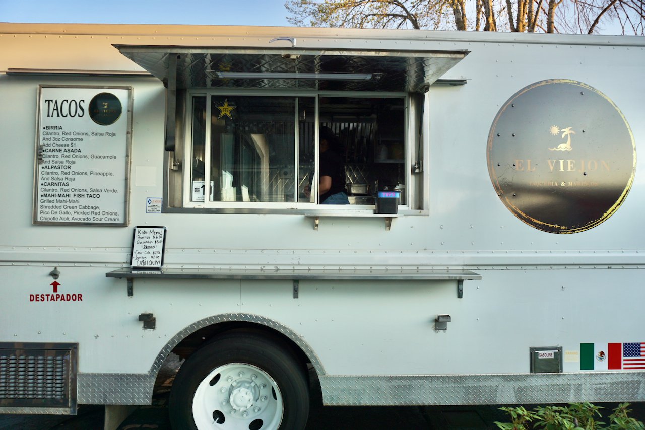 Food is provided by on-site food truck El Viejon Mariscos y Taqueria from acclaimed Vancouver chef Eldy Prado. Coming off of high-end steakhouse and seafood restaurants, Prado has invested in his own truck and in Vice Beer itself to be the permanent food provider for the taproom and the neighborhood. His menu is meat and seafood heavy Mexican street food classics from carne asada tacos to birria. He plans to be open regularly for both lunch and dinner hours, conveniently parked with a window out to the Vice Beer patio.