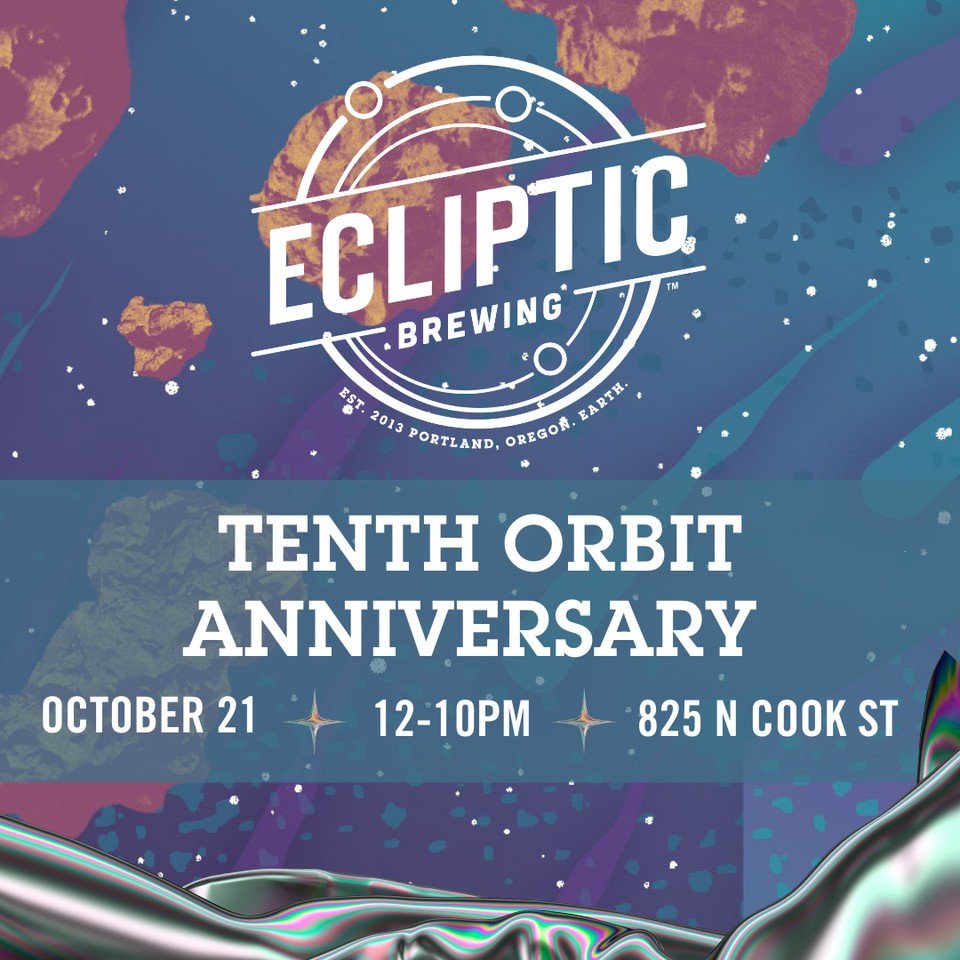 Portland, Oregon’s Ecliptic Brewing is celebrating their milestone 10th Anniversary on October 21st, with a party and a new beer release- Tenth Orbit: Rice IPA – which will be released in its honor in both draft and 16-ounce cans - the beer ships October 18th.