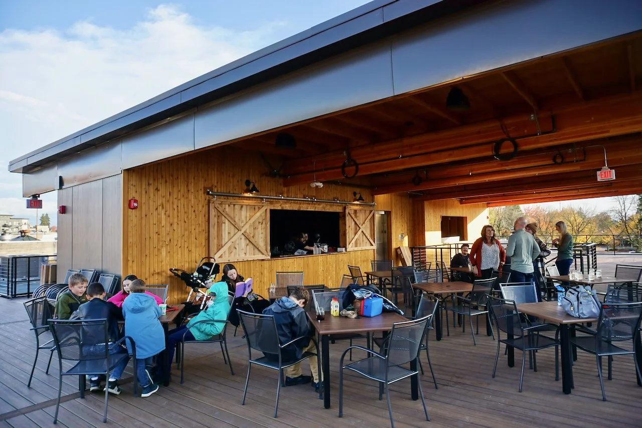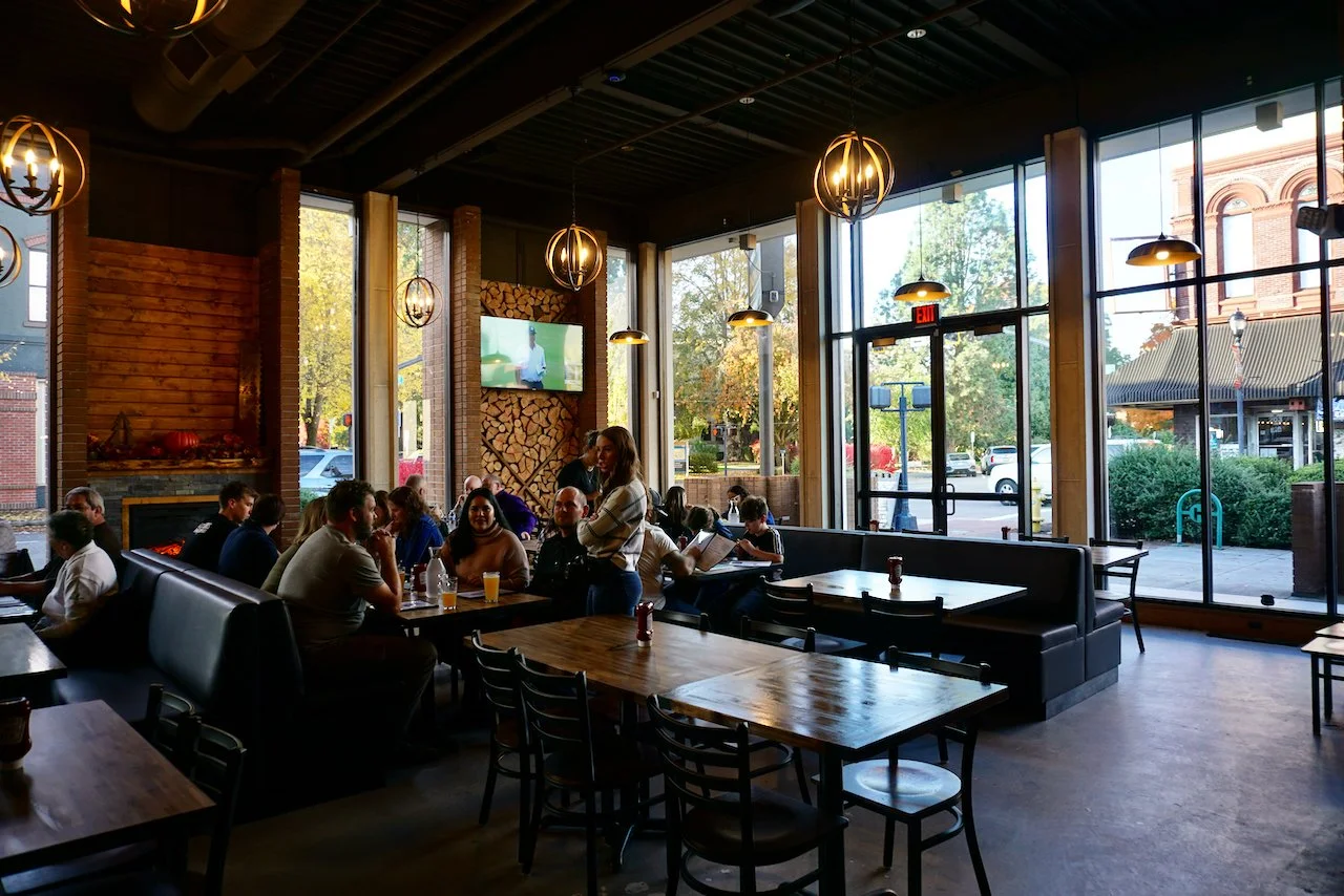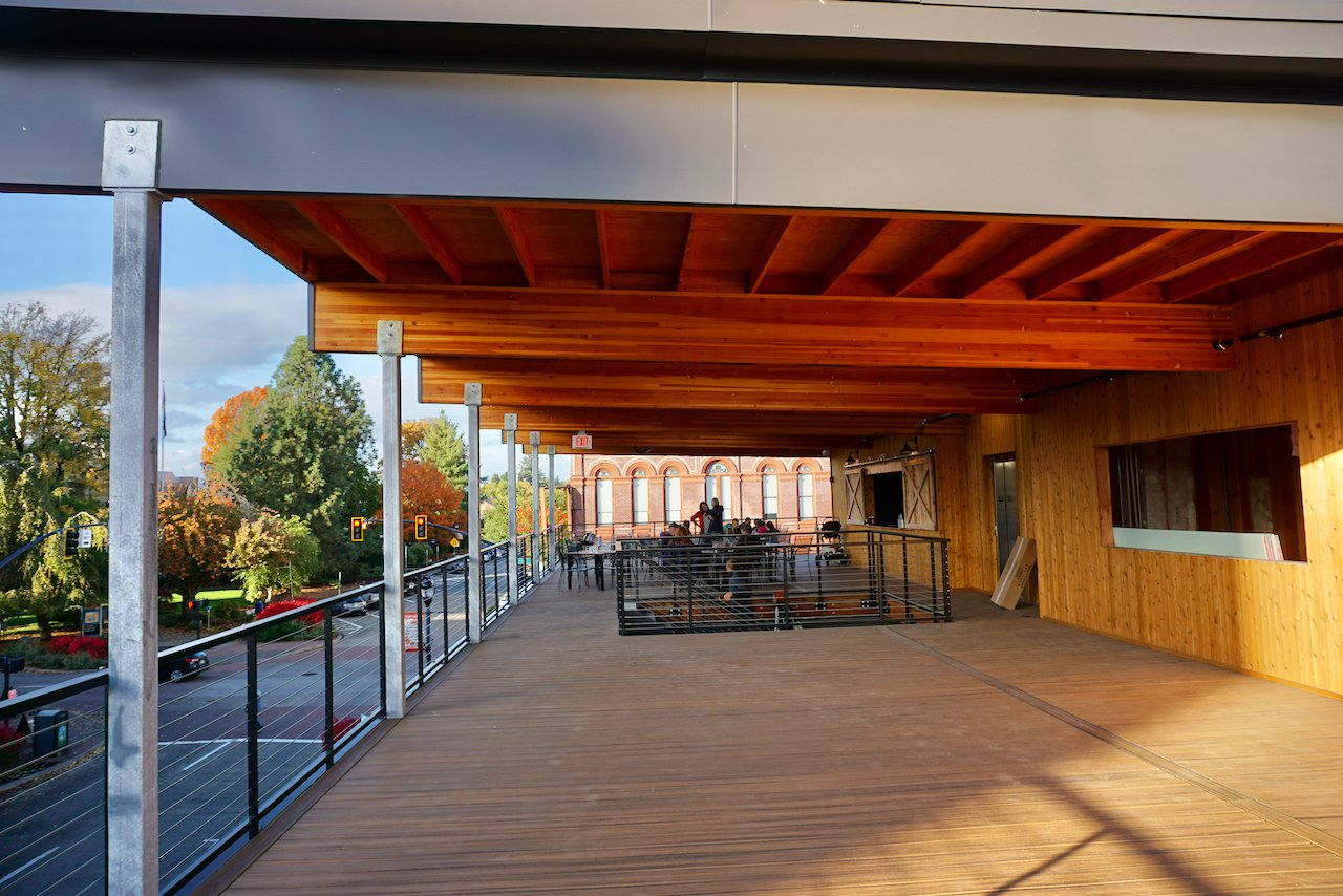Backwoods Brewing is the prime anchor tenant of the Main Street Commons, their pub takes up the entire 7,800 sq. ft front Main Street facing side of the building and 3,000 square feet of a 5k sq ft. rooftop which has it’s own smaller bar. The rooftop should prove to be a huge draw for gatherings, even year-round, as it is both wide open on the sides but with a slanted angular rooftop that protects from the wetter elements without fully enclosing the space. From either side of the building wide rooftop you can look down onto the main street and Giant Sequoia Heritage Tree Site outside of the county courthouse, or south on 2nd avenue towards the Hillsboro Artists' Regional Theatre.