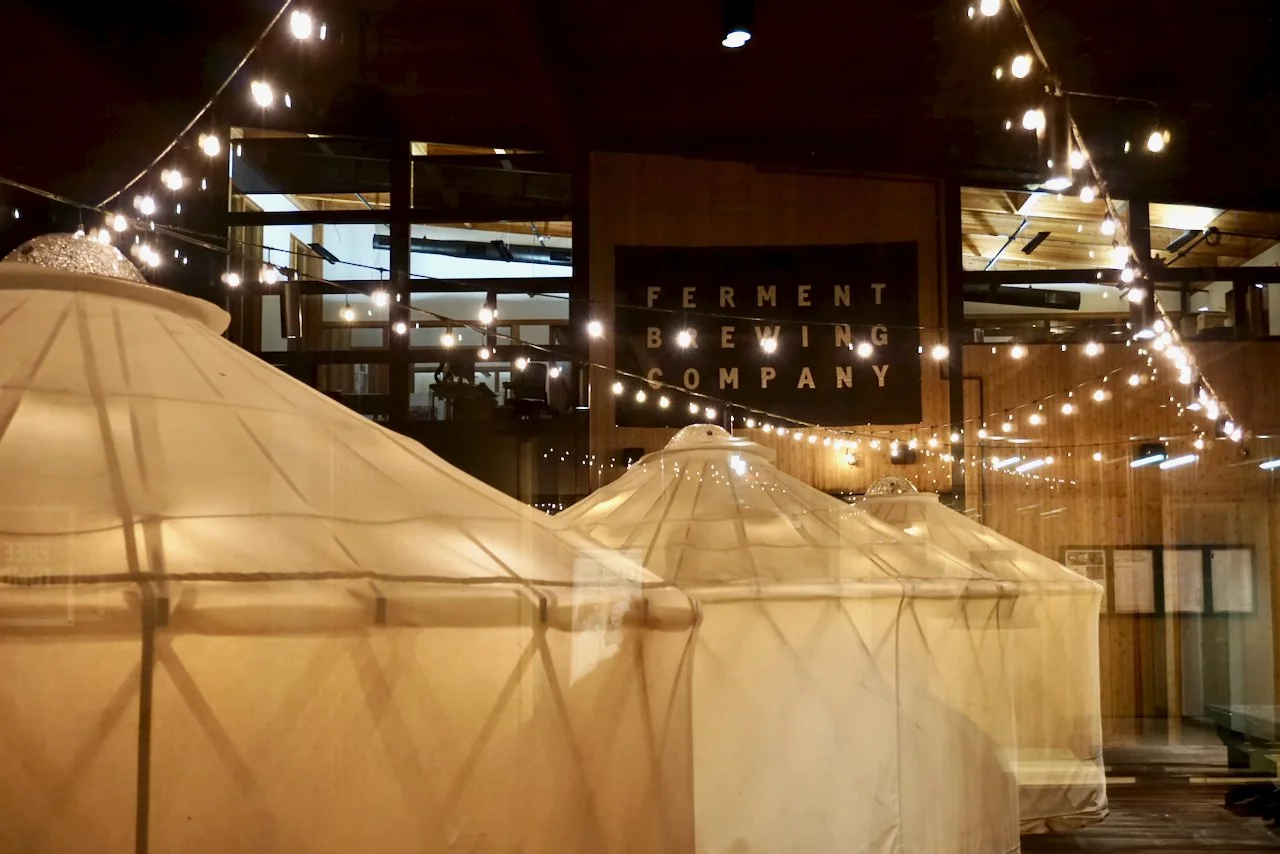 Ferment’s brewpub is one of the best spots to dine or drink in town, arguably with the most scenic space on the gorge as their elevated taproom just across waterfront park offers an almost unimpeded view of the popular kiteboarding area. But if you are looking for food as good as the beers, Ferment Brewing has you covered with a seamlessly executed menu of elevated and fermentation heavy foods both hearty and snackable. And during the winter months, the spacious deck has a big open gas firepit cranking and four warmly lit and heated yurts, and the brewery now has an annex space across the way with a separate bar, big screen tv and projector to catch football games like no other place in Hood River.