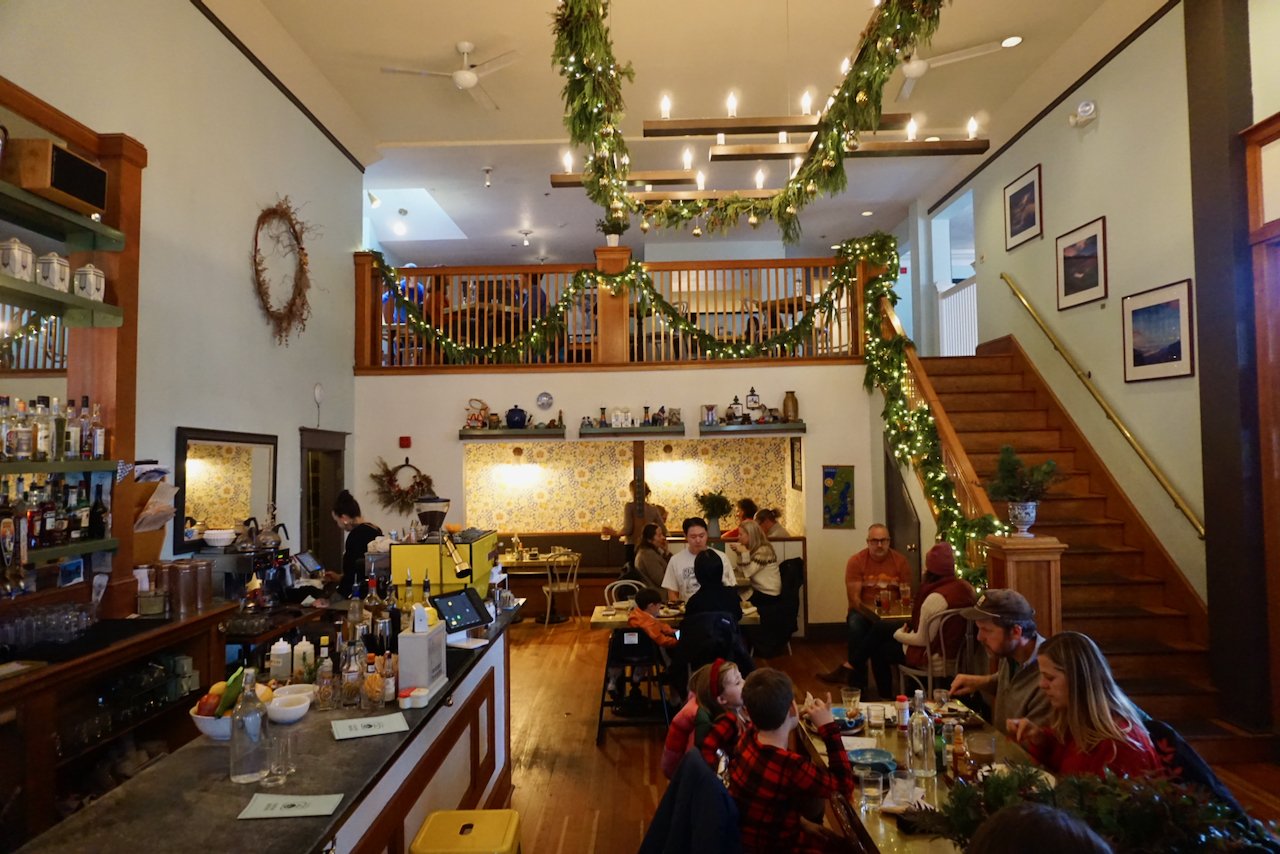 Already a hot destination at any time of year, pFriem decorates their taproom with white twinkling lights, festive red berry wreaths, and spruce. The food menu is always changing, with the kitchen doing a great job balancing pub classics with European-centric items and seasonal favorites that really get you into the spirit of the season, such as: pumpkin curry, chicken paprikash, lamb stroganoff, and potato leek soup.