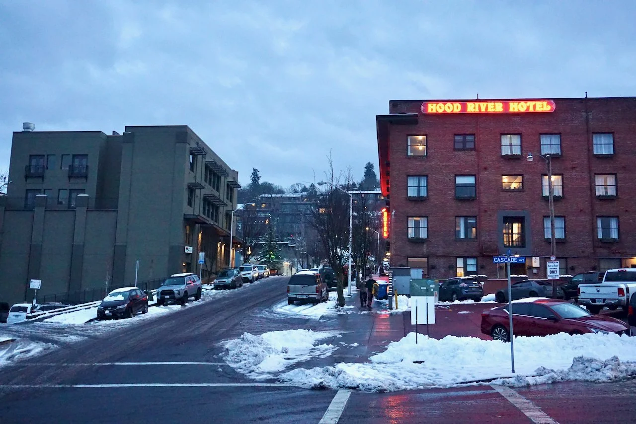 Hood River, Oregon is a favorite easy getaway for Oregonians and Washingtonians, especially those in the nearby metro-areas who can get there in only about an hour drive. The small town of about 8,500 is famed for their thriving craft beer scene, and even moreso for outdoor activities and sports like mountain biking, sailing, and kiteboarding, but after the autumn fruit harvests and hop celebrations fall off, the town gets pretty quiet during the darker days of winter, but unjustifiably so if you are there for more casual fun of drinking, eating, shopping, and taking in holiday festivities and winter beers. And to encourage those visitors braving the weather, the City of Hood River will provide free parking downtown from Dec. 11 to 24.