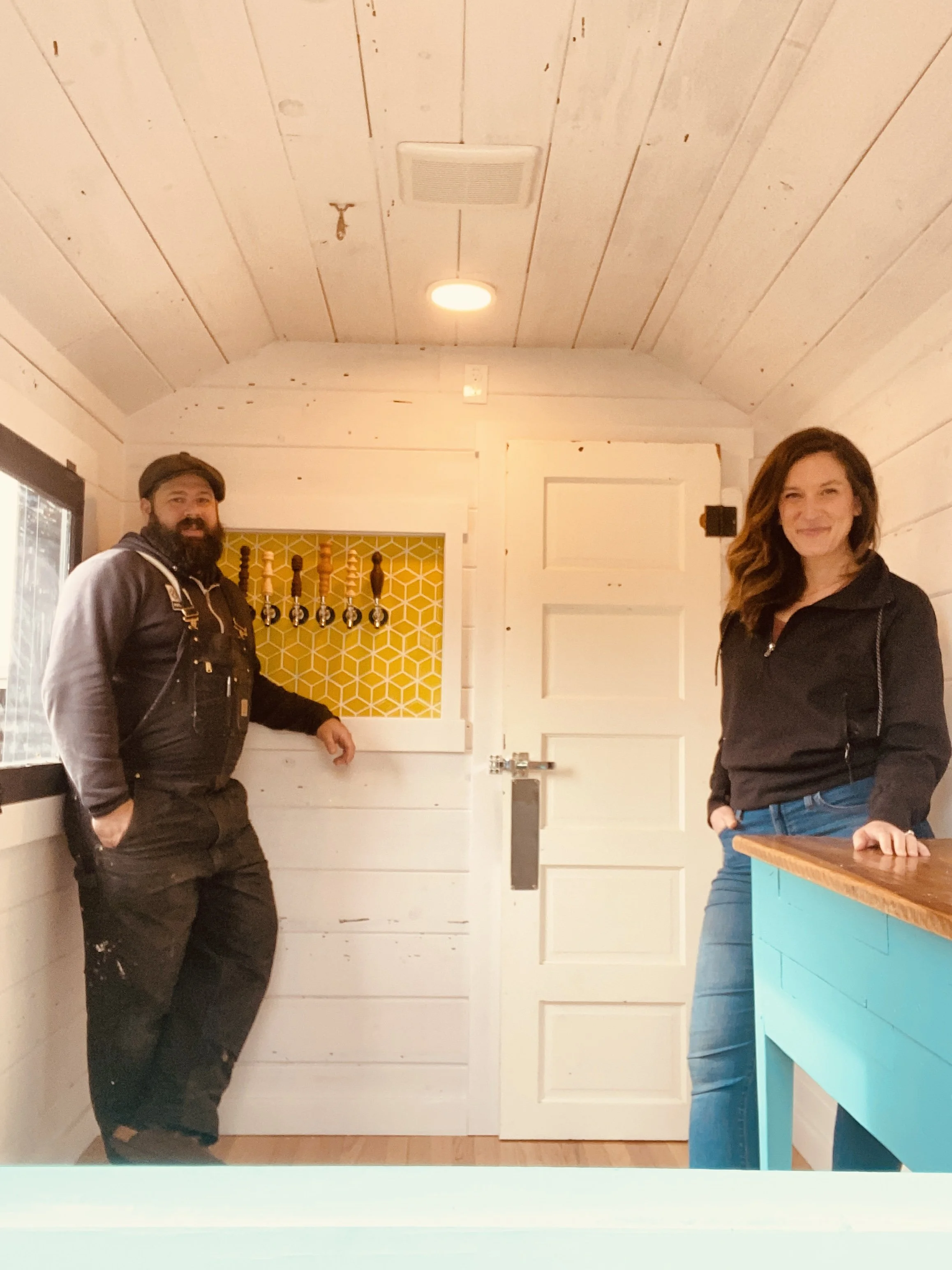 Little Hop Brewing quickly found that they could not keep up with customer demand on their tiny scale, and decided to start looking for ways to expand incrementally. The first small step was commissioning a custom made metal trailer base for a tiny trailer from Iron Eagle in Troutdale. From there, Zak and the Little Hop team began building out a mini-home draft beer trailer themselves. Zak’s building background started in high school, and progressed to learning welding and mechanics and he eventually went on to be a carpenter. “I built houses, furniture and cabinetry for over 10 years,” says Zak. “Little Hop is the first time I've been able to use all my skills, starting with restoring the 1963 Dodge D100 beer truck, to actually building the brewery and Little Hop House to brewing the beer.”