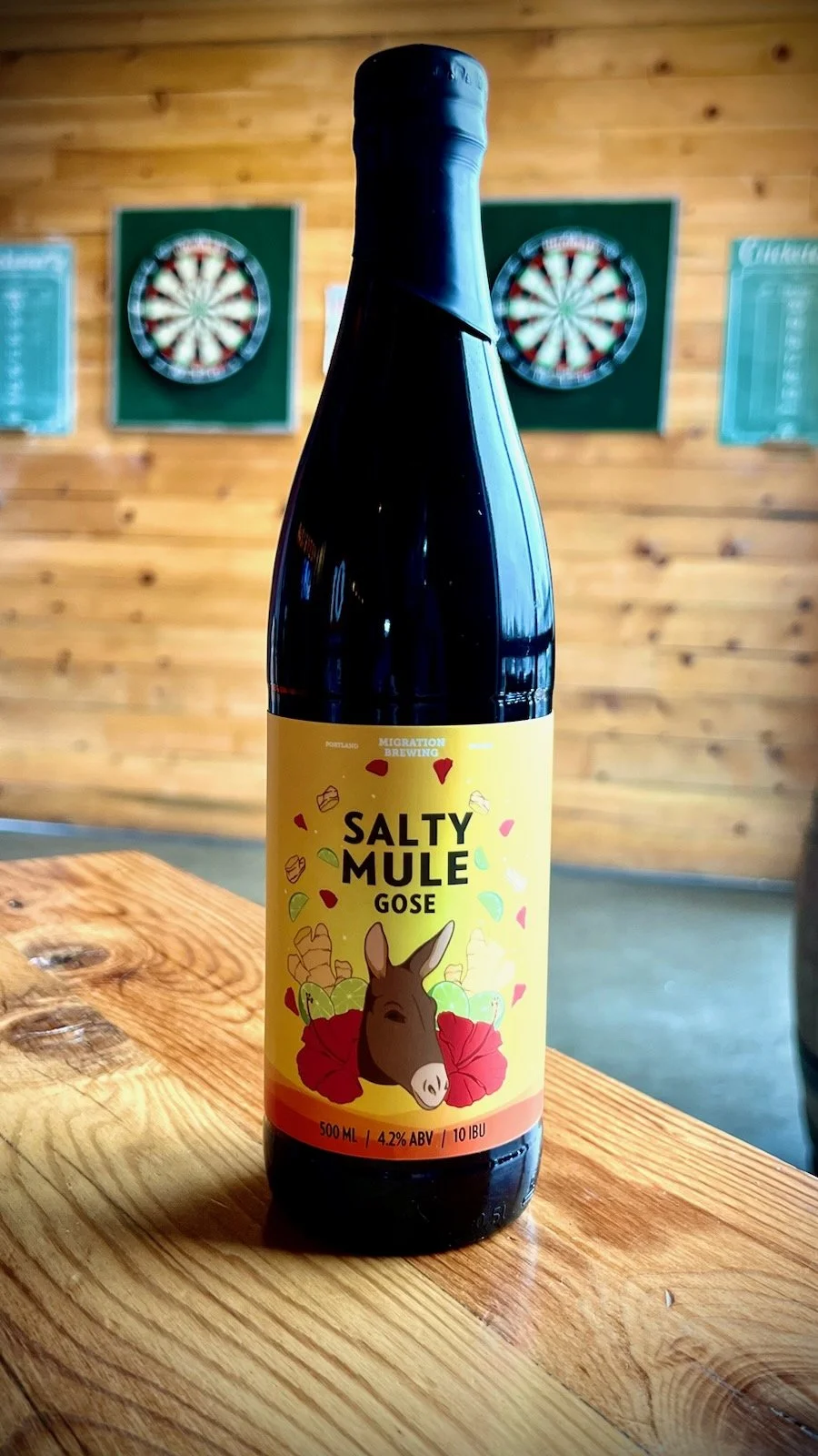 Salty Mule Gose was brewed in collaboration with the 2023 SheBrew PDX festival. This unique seasonal beer was brewed by Teryn Zirk and the strong women of Migration. SheBrew is an annual event that celebrates female brewers, cider & mead makers, both amateur and professional that took place on March 5th.
