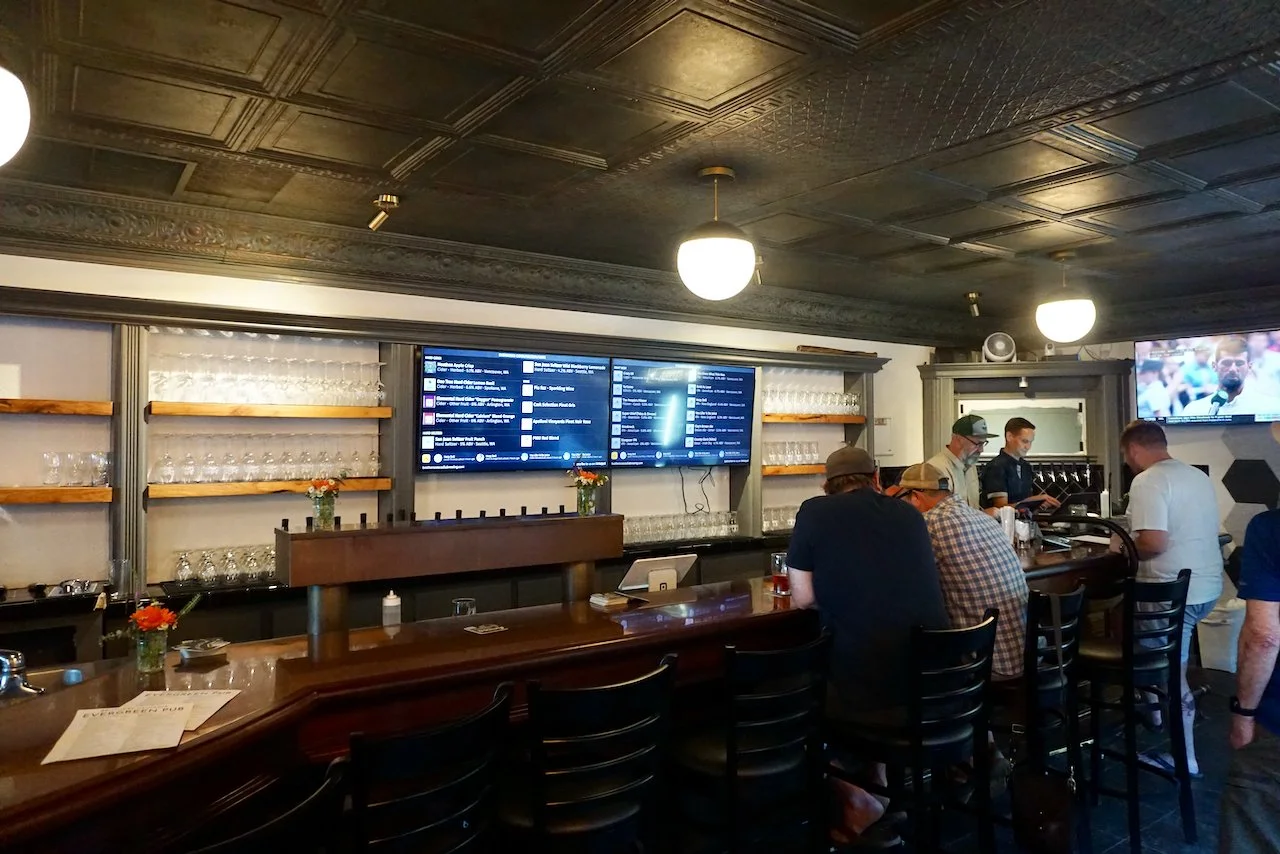 The courtyard patio is a hidden gem tucked away from the street, if you are not at the Evergreen just for the beer and food then the patio on a warm-ish summer day is a great reason to visit. The narrow space is accessible from streetside glass doors, and enclosed on all sides with a lovely root system, lush vines, and a full tree that make it feel like a secret brick lined garden. The courtyard separates the Evergreen main pub and bar from the kitchen and a spillover/event space that used to be the By the Bottle shop which will now be used to host comedy and live music. The only downside is this uncovered area will be a real downer in the rainy season, and we feel for the staff running food between the kitchen and the bar through the elements.