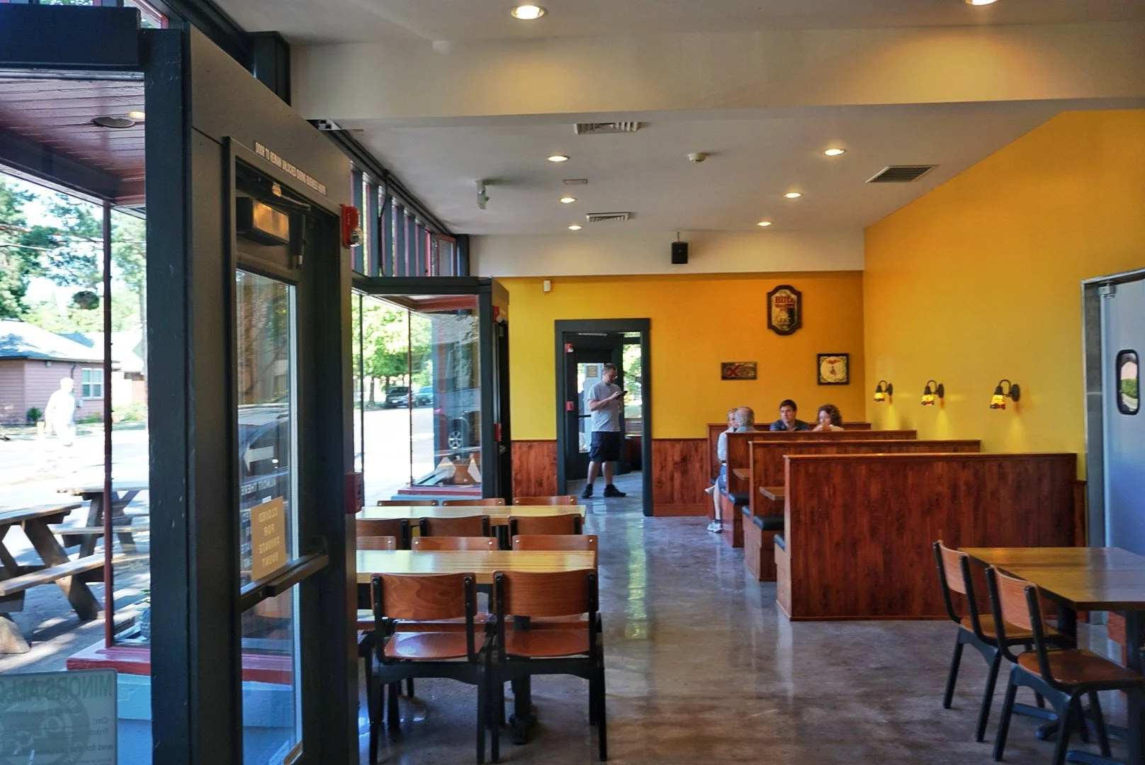 Lucky Lab was also a casual family-friendly pizzeria, but Double Mountain has given the space an overhaul that leaves the layout and structure in place but wholly replaced other elements like a brand new bar that emulates the one in Hood River. The space has been polished up with new vintage beer can art, deep comfortable booths, and an events room that can host large private parties.