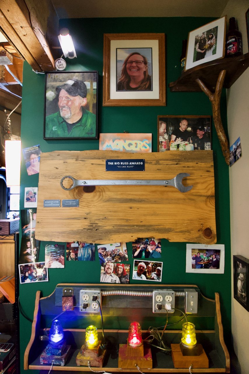 The vibe of The Beermongers has always been of a casual hang-out session, the adult equivalent of your mom’s basement game room. That could be used as an insult, but for the Mongers’ it has been both a calling card and a badge of honor. Old beer coolers, hand-drawn customer illustrations and framed photos, stickers, baseball caps, mascots, and mementos from bottle caps to vintage beer festival swag, cover the tables and walls in a scattershot fashion that would give Marie Kondo an aneurysm. Campbell shrugs that off, it works for them, “We werent particularly decorators anyway, we have been accused of being some sort of garage of craft beer. And you know it was like our clubhouse for our friends and family.”