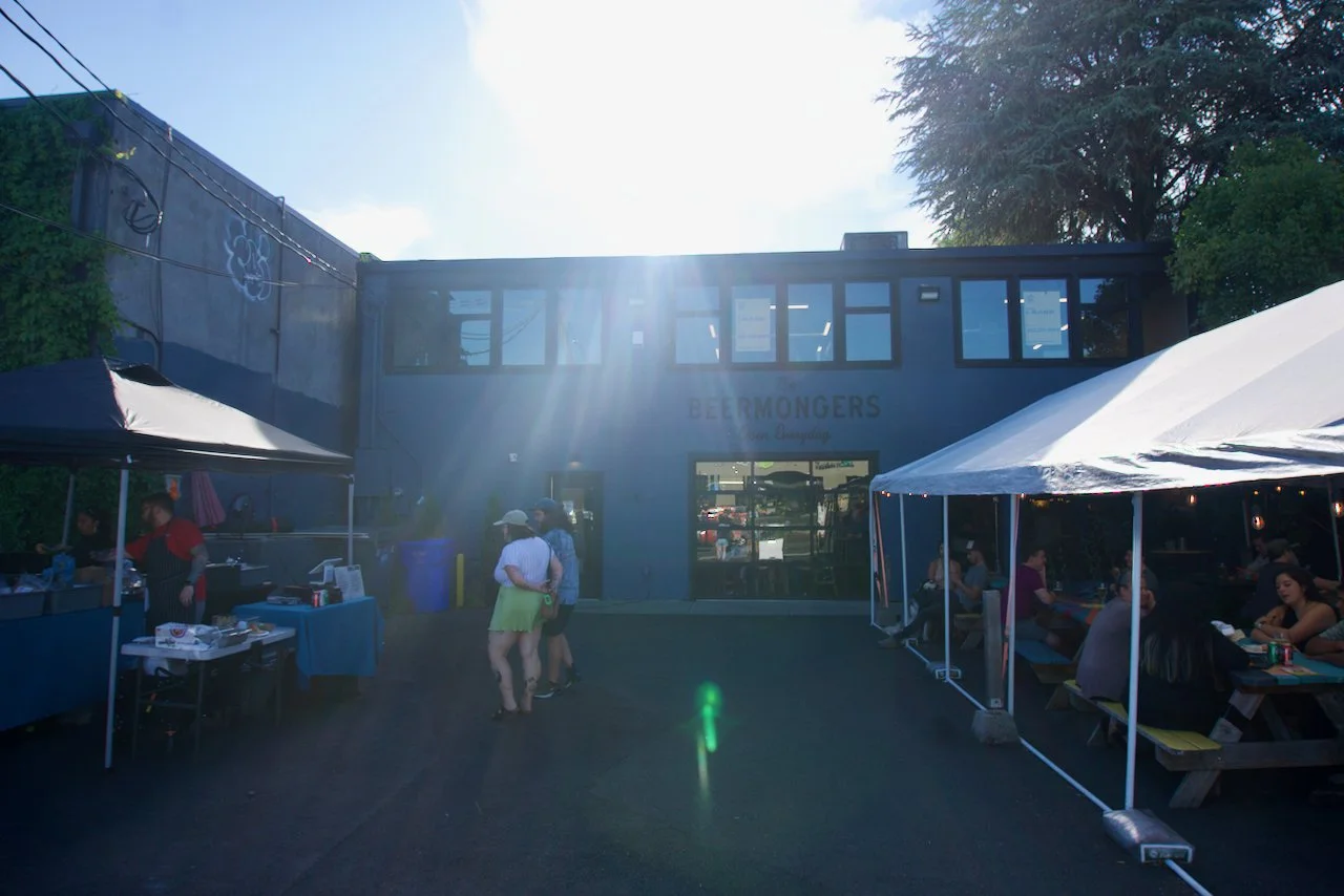 The pandemic, and really bad landlords, almost killed The Beermongers. The original Beermongers location at the corner of 12th and Division in a small plaza was the perfect location up until the pandemic pushed frustrations over the top. The bottle shop never served food, but had the great fortune of sharing a building with beloved vegan Italian restaurant Portabello, when that closed another restaurant called AVIV went in and also was a great neighbor, but when they closed down because of the pandemic it became clear to Campbell it was no longer going to work. Since they had no outside seating area, Campbell decided to annex a section of the parking lot and put up a tent as a last ditch effort to stay open. The building owners offered no help, no break or assistance to any of the businesses there. Eventually after public pressure, Beermongers were allowed to keep the tent up, atleast for awhile.
