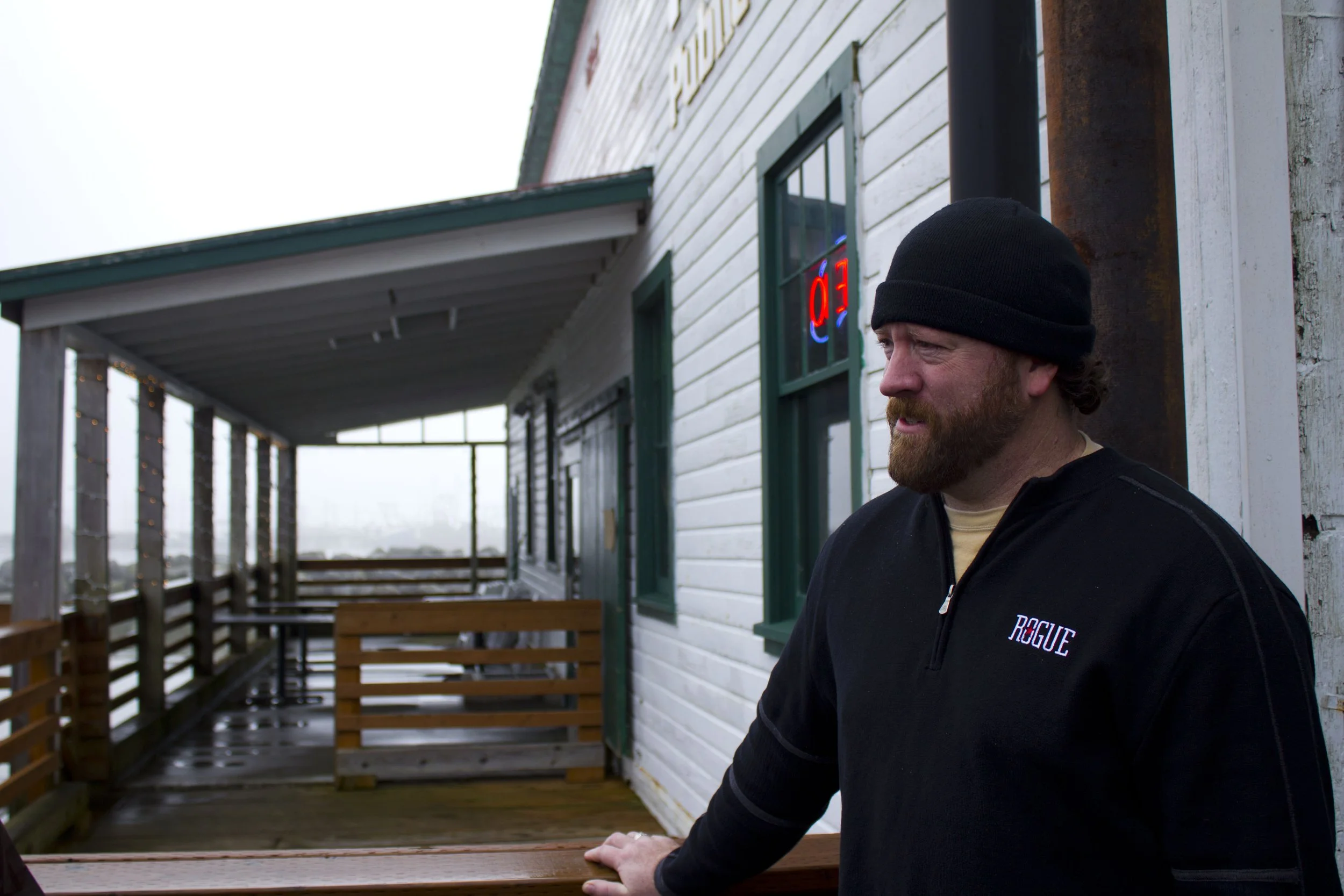 Floyd Holcom behind the bar at XRogue, the former Rogue Pier 39 Public House in Astoria, Oregon