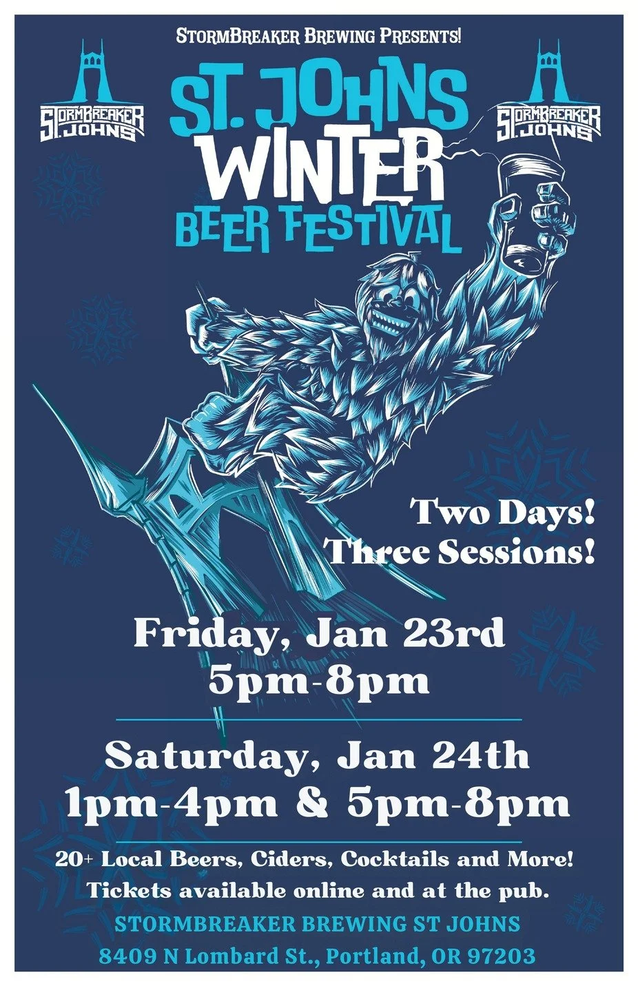 This weekend Friday and Saturday, January 23rd and 24th is the return of the St. Johns Winter Beer Festival at StormBreaker St. Johns pub. StormBreaker took over hosting this long-running festival from now shuttered beer bar Plew’s Brews which stood in the exact same location a few years before the brewery.