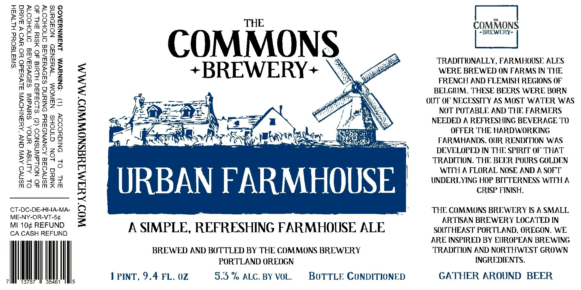 The label on the 750ml bottles of the original Commons Urban Farmhouse Ale read the following: