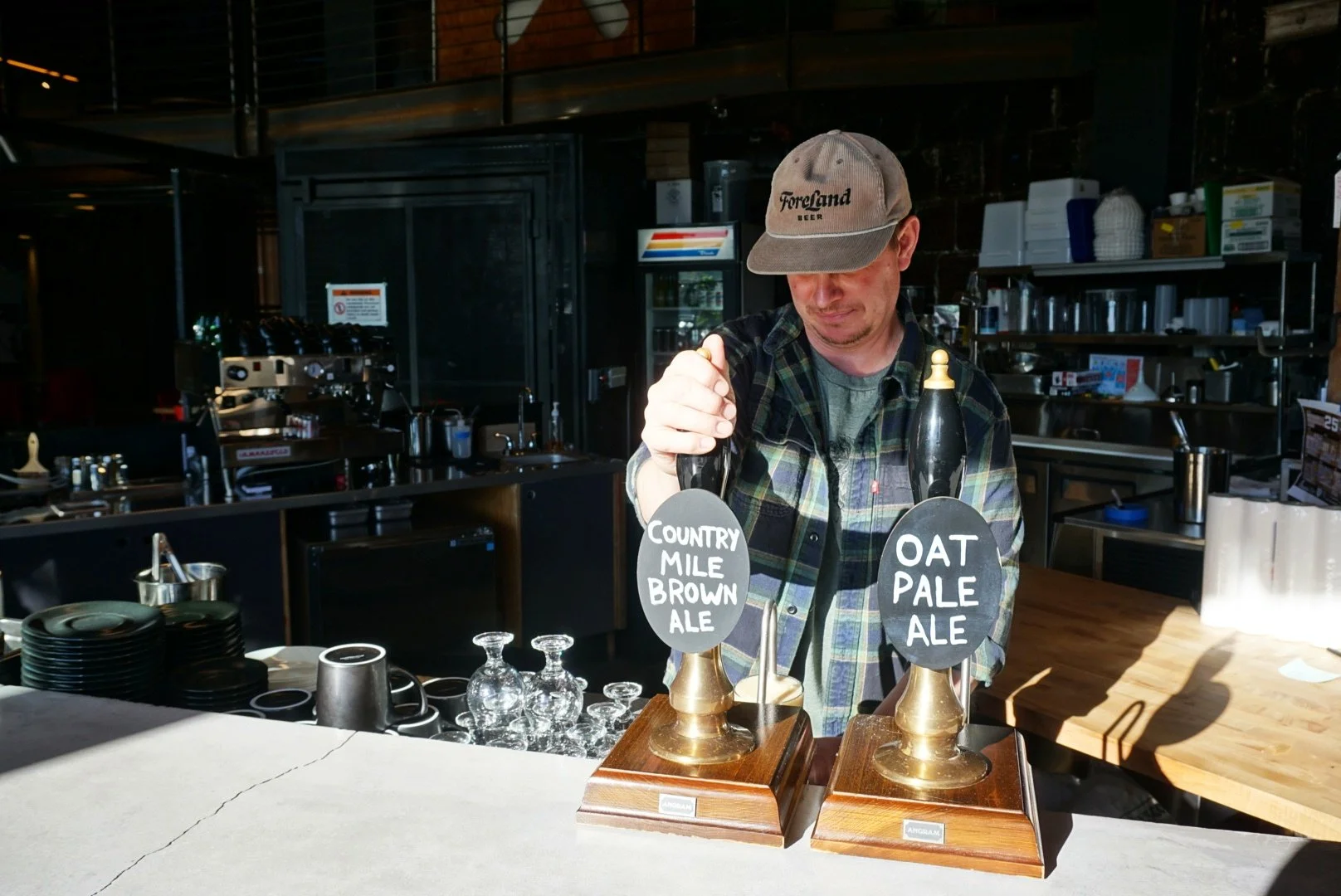 ForeLand Beer owner David Sanguinetti pulls a cask beer at Upright Brewing