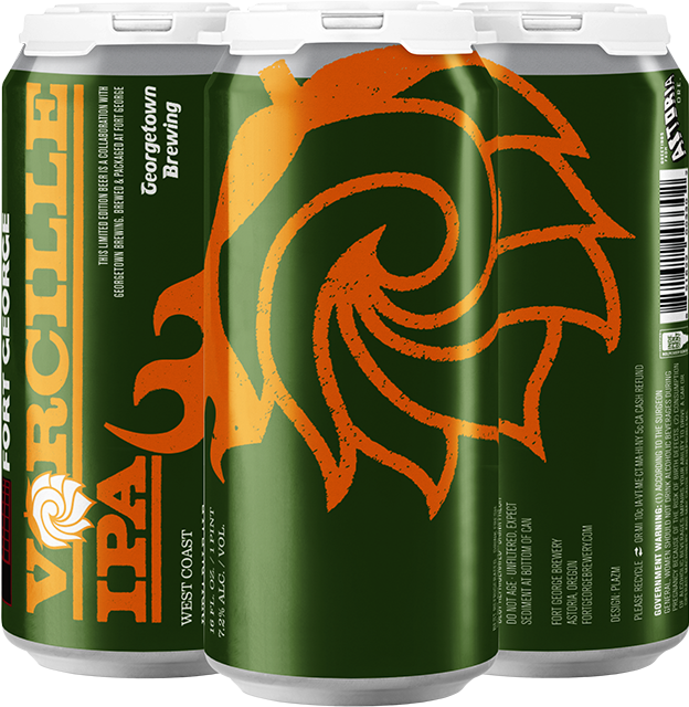 Part Lucille, part Vortex, Vorcille is a bright, peachy, balanced West Coast IPA from your friends at Fort George and Georgetown Brewing in Seattle.