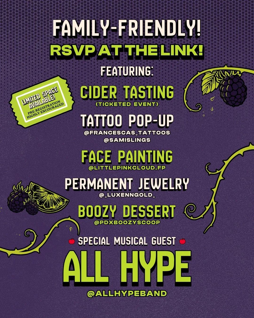 Portland's own pop-punk favorite, All Hype, takes the stage from 8–9pm to close out the night. High energy, sing-alongs, and the perfect soundtrack for raising a glass. Entry is free, but space is limited so pre-registration is highly recommended as we expect to sell out. Both Warehouse Only Entry and Tasting Package tickets will gain you access.