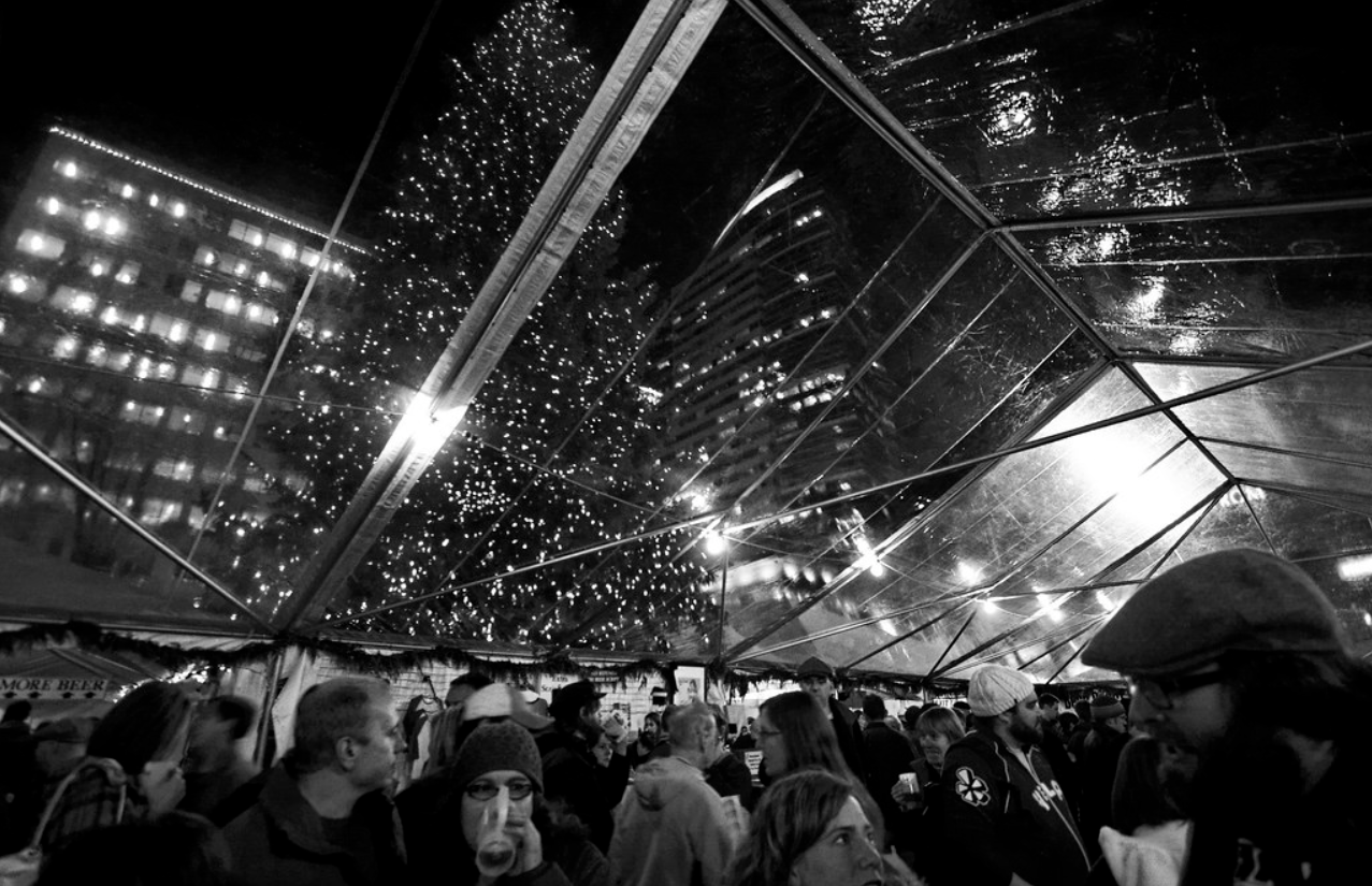 Before 2009, you could still legally smoke in bars, restaurants and public spaces in Oregon. The Holiday Ale Festival had by this time grown large enough to have a tent out of the Square on SW 6th Avenue. This was before the city decided to put a MAX stop there and before the smoking ban went into effect, this opened talks of expanding the fest outside of the limited square grounds.