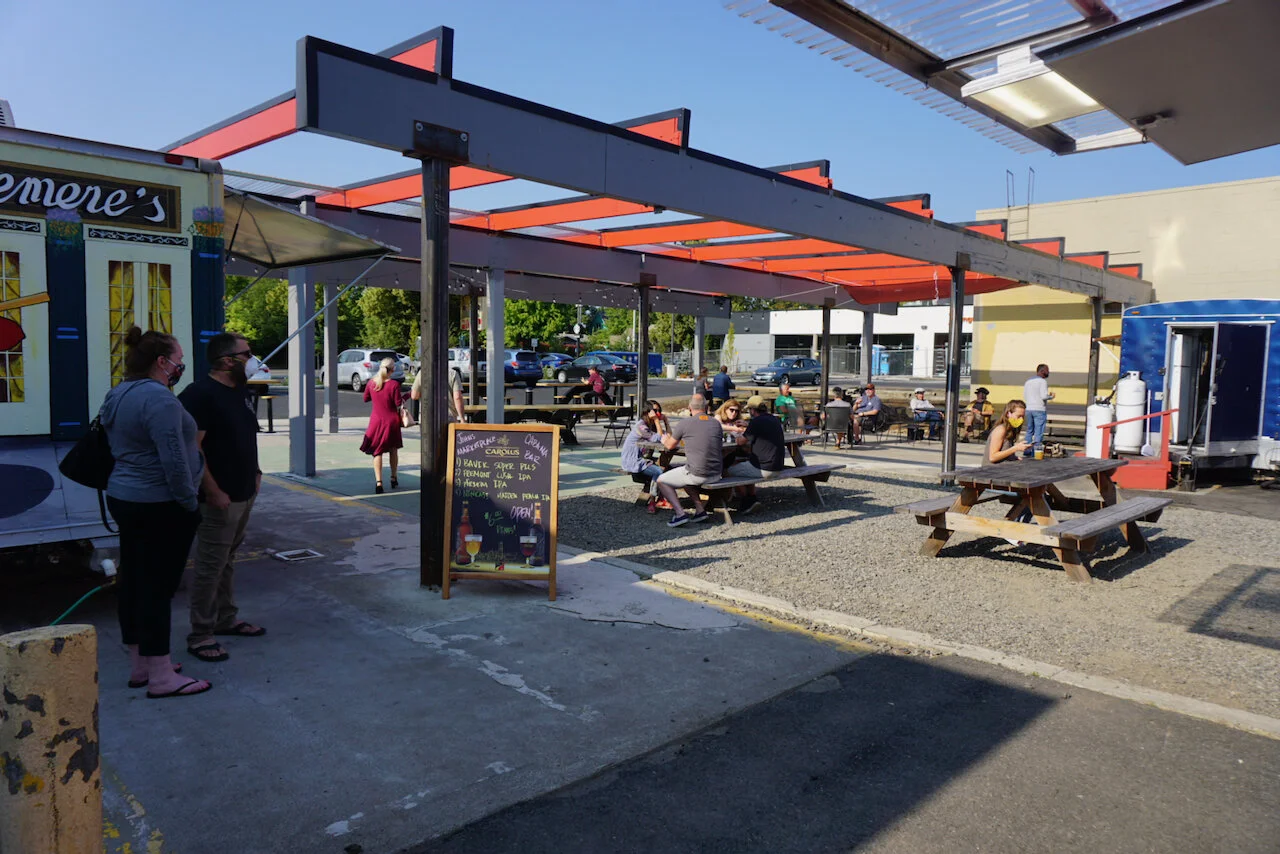 The marketplace beer garden and food cart pod is a central draw of the new John's. Through a doorway at the back end of the bar, customers can exit to an enclosed but narrow patio along the side of the building, through another door in the fence is an exit/entrance to the Powell Center Food Trucks pod. With seven different food trucks to choose from, John's does not need to provide their own food as it would be difficult to compete with the incredible selection outside.